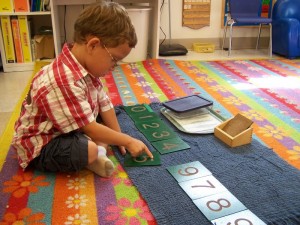 child tracing on sandpaper numbers